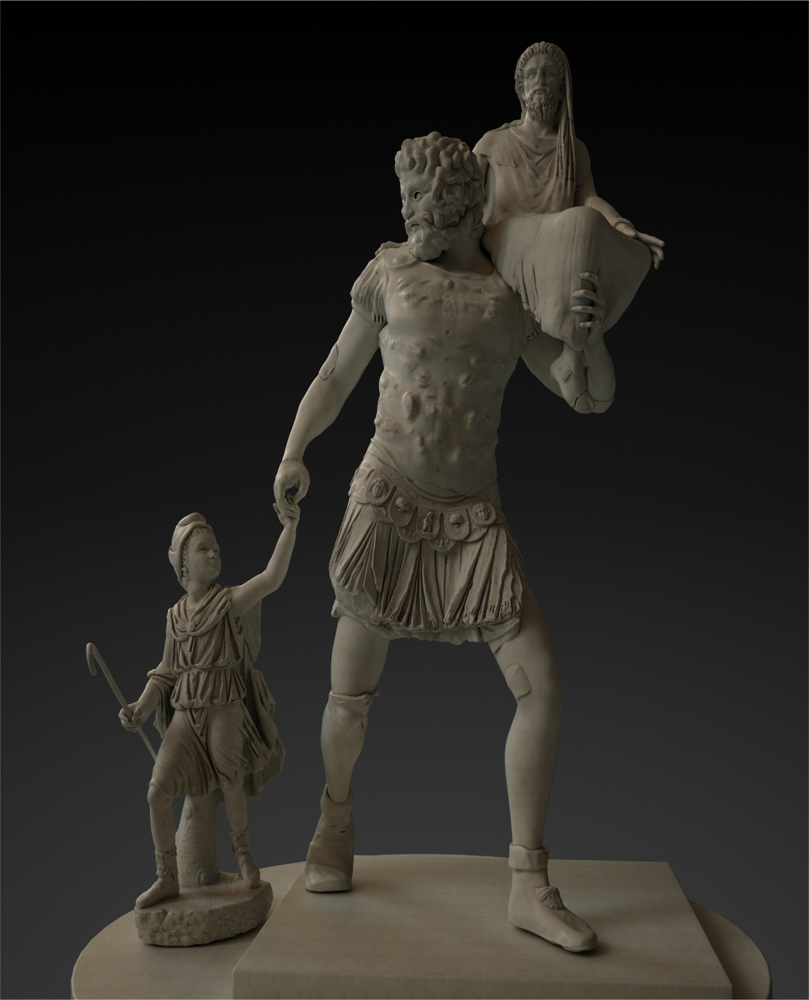 The work that we shall describe in this article belongs to this rather select group, at least in terms of numbers. It consisted of acquiring digital data with which to build a 3D model of the famous Roman Empire sculptural group known as the Aeneas Group. Our goal was not just to make a set of statuary fragments legible with newly available technologies and to produce a model of the group, but also to provide historians with tools and materials that would enable them to ask and seek answers to their own research questions. Our ultimate aim was the reconstitution of the masterpiece in the sense that we would be able to allocate all of the fragments to their correct position in a virtual model.