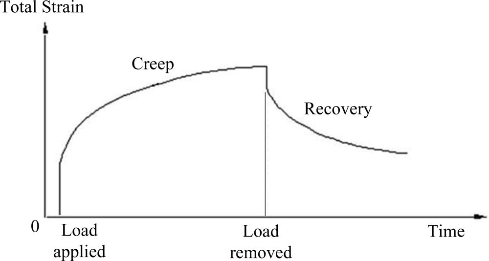 The polymer material is viscoelastic. For the most general case of a linear viscoelastic material, the total creep strain ɛ(t) is given by Burgers’ model, which is a combination of the Maxwell and Kelvin models [18]: