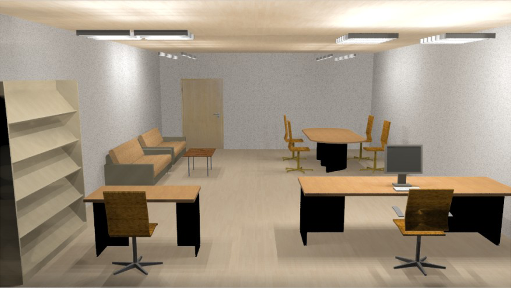 When a zone contains more than one workplane, lighting from Illumination Fields may overlap and influence other workplanes. Figure 5 shows a sample of workplanes with their different lighting effects. All activities are carried out in four workplanes. These are: meeting desk (WP1, top right), waiting section (WP2, top left), journal study area (WP3, bottom left) and the secretary’s desk (WP4, bottom right).