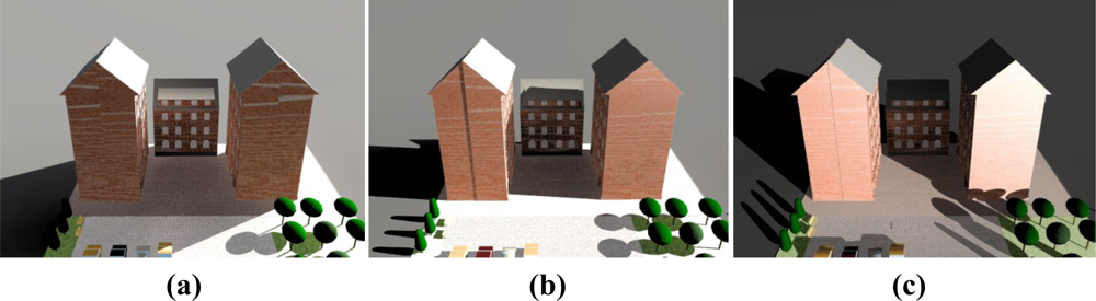 In the method used, initially all of the lights are off (or without change). After that the external lighting intensity is measured during the time that sky is clear. Simultaneously we examined and recorded the amount of WPs’ lighting intensity. After a day, the maximum amount of each WP is compared with threshold (β) and if the maximum is less than the threshold, then the external lighting is deemed to have little effect on that WP, where “β” is related to user satisfaction. These measurements can be done by software simulation, (see [19]). Samples of conditions of the places that include WPs with little effect from external lighting (and do not need sensors) are; places where their window have low degree of transmission, locations where the WPs are far from windows or when large obstacles (such as other buildings) shield the windows from external sources, as in Figure 8.
