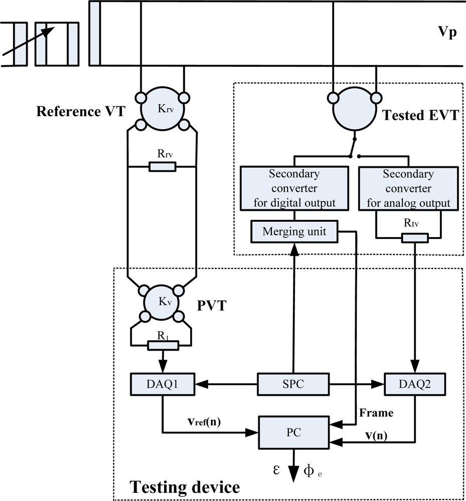 For digital outputs of EVTs/ECTs, one of the possible approaches is to convert the digital output into an analog one and to take measures by the TC method, but the time delay introduced by the repeated conversions will cause a phase displacement that is outside the handling range of the TC. In addition, this method adds to the uncertainty and it is not directly possible to be sure that the data stream is in accordance with the standards [14]. It is also possible to transform the analog output of the standard transformer into digital signal and compare with the digital output of the EVTs/ECTs [15].