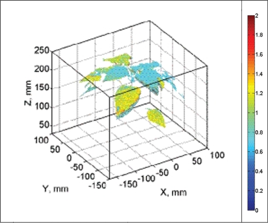 The great potential of this approach led us to a construction of a system that performs a highly accurate 3D reconstruction of a plant from multiple real color images and projects the ChlF captured by near-infrared camera on such a reconstruction. We used a particular type of structured light technique, coded light (see Materials and Methods, [50]). In this paper, we report not only on the methods that we have employed to achieve this goal, but also a case study with water stressed young pepper plants.
