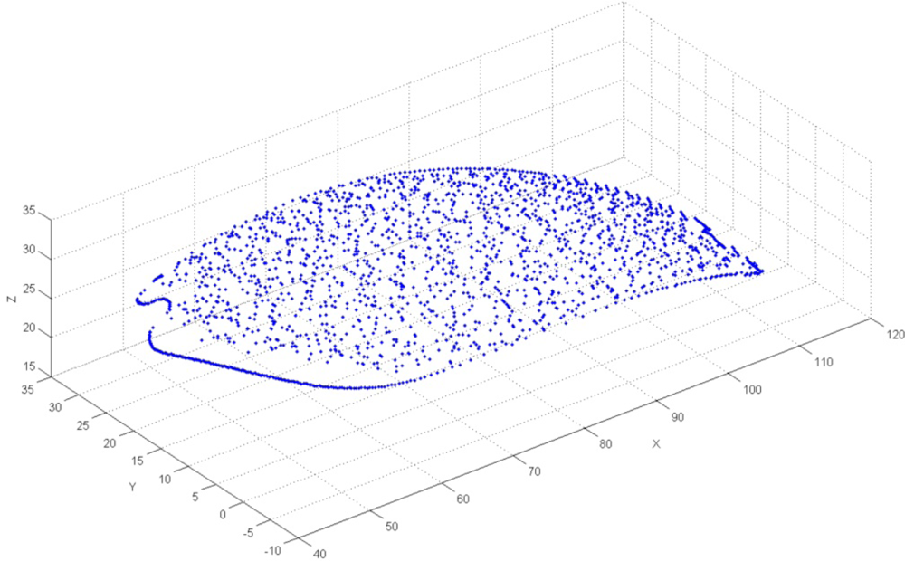 The next phase of pre-processing was the extraction of point data in cross sections. In order to efficiently reconstruct the surface model, the cross-sectional resolution was changed from 5 to 10 μm. In this way the number of cross-sections was lowered from 3,000 to 1,500, which in turn decreased the number of points to 494,332.