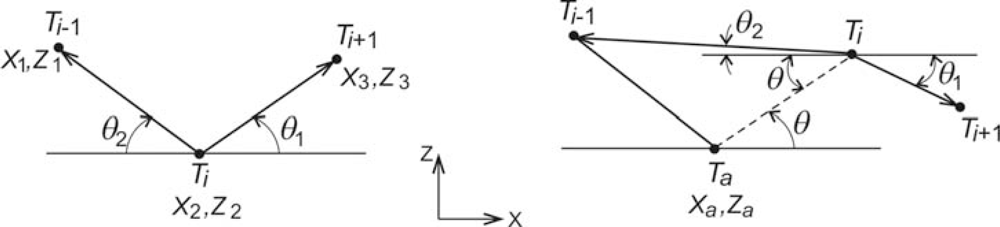 The segmented line filter is based on staggered lines which are composed of line segments, defined by the knot points (Pi) in the selected plane x-y, x-z or y-z. After the filter line has been generated, point data are eliminated from one of its sides on the bases of the user choice (Figure 2(b)).