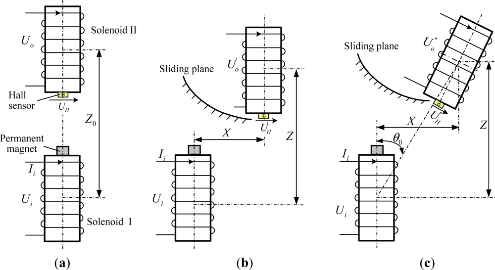 Combining Equations (2) and (3), the relationship between Solenoid II’s output Hall voltage UH and its position relative to Solenoid I can be described as: