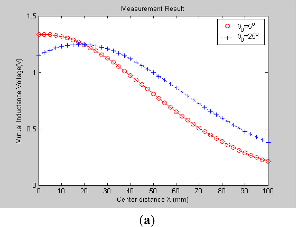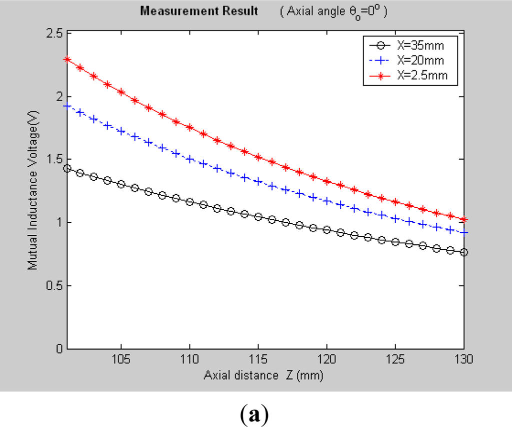Model verification process mainly includes two parts: (i) test the modeling effectiveness of EELA and NIELA for an I-type sensor (X Variable, Z invariant); (ii) test the modeling effectiveness of EELA and NIELA for a II-type sensor (both X and Z Variable). This is conducted mainly by comparison among the measured mutual inductance voltage, NIELA-based mutual inductance, EELA-based mutual inductance under the same given conditions. It is noted that the change of mutual inductance should be completely proportional to mutual inductance voltage in theory [].