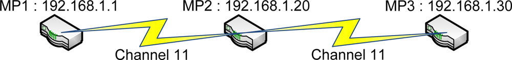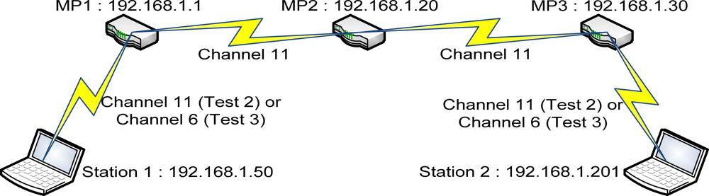 Test 1: test the 1-hop backhaul WMN connection as shown in Figure 3.