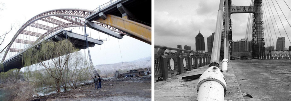 The most important problem in the cable maintenance is the event of moisture intrusion. Moisture allows for the biological and chemical attack by making the materials easier to corrode. Although there are many precautionary measures implemented to protect the cable, the ingress of moisture is difficult to avoid when the sheathing is cracked. Water intruding through the crack is often accumulated in anchorage zones. The anchorage zone is vulnerable due to the local stress or notches created by the anchoring device. The anchorage zone has more severe corrosion problems than the free length [2]. Another reason for deterioration of cables is fatigue. The fatigue fractures often occur in the free length of cable. Corrosion and fractures have impacts on the strength of cables, which may have a significant influence on the cable's load-carrying capacity. Figure 1 shows two recent bridge failures owing to corrosion and fractures of the cables in China [3,4]. One hundred forty-four cables of the right bridge were replaced, which cost 80 million RMB (about 14 million US dollar). Therefore, the condition assessment of cables is very important to the bridge safety. On one hand, flaws can be detected early for avoiding serious accidents. On the other hand, only the flawed cables need to be replaced based on testing results and unnecessary costs can be avoided.