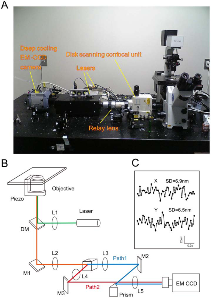 - Watanabe, T.M.; Sato, T.; Gonda, K.; Higuchi, H. Three-dimensional nanometry of vesicle transport in living cells using dual-focus imaging optics. Biochem. Biophys. Res. Commun 2007, 359, 1–7. [Google Scholar]