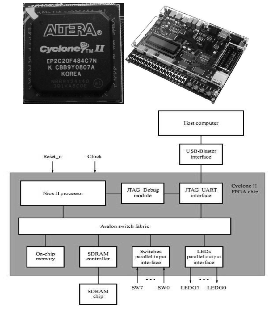 The NIOS II [48] is a soft-core processor based on RISC architecture. It is targeted for Altera devices, allowing scalable development and flexibility since it can be customized with additional features depending on performance or cost objectives. NIOS II [48] is an enhanced version, which offers higher performance and a lower cost than the previous 16-bit soft-core processor NIOS [49]. This 32-bit processor belongs to a three-member family named Fast, Economy, and Standard, where each one is optimized for a specific price and performance range. Each one of the three cores uses a common 32-bit Instruction Set Architecture (ISA), with 100% binary code compatibility between them.