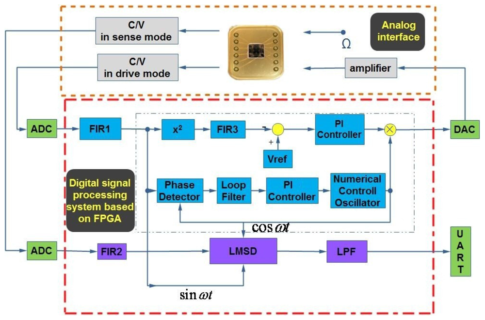 As can be seen in Figure 1, a hybrid detection and control circuitry commonly includes an analog interface circuit and a digital processing system based on FPGA in the drive and sense modes.
