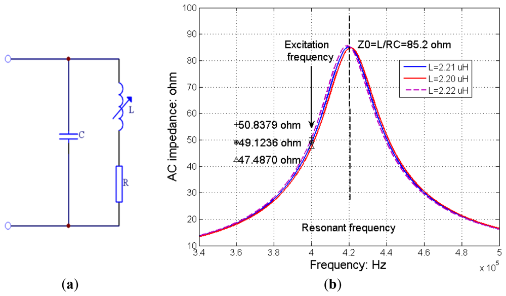 In fact, the frequency shift caused by the change of self-inductance during natural breathing is so small that the relationship between the change of amplitude and that of self-inductance can be deemed as linear. For single-loop inductive sensor used for adult subjects, if the excitation frequency is set to 400 kHz and the central frequency of the sensing unit is set about 420 kHz, the AC impedance of each sensing unit is typically in the range of 30∼70 Ω at 400 kHz, depending on the size of the subject and the property the inductive sensor.