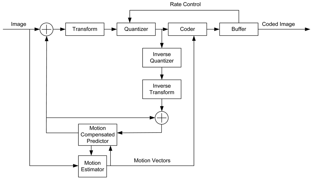 JPEG and JPEG2000 are standards for still image compression. Notably, JPEG2000 has a rate-distortion advantage over JPEG. MPEG and H.264 are International Organization for Standardization (ISO) and International Telecommunication Union (ITU) standards for video compression. Figure 1 illustrates the H.264 video encoder.