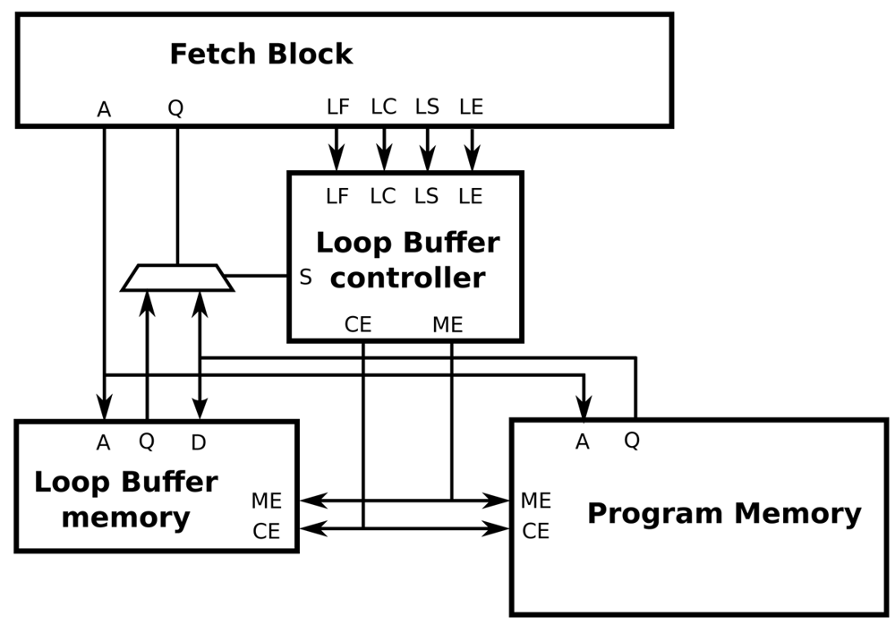 In essence, the operation of the loop buffer concept is as follows. During the first iteration of the loop, the instructions are fetched from the program memory to both loop buffer architecture and processor. In this iteration, the loop buffer architecture records the instructions of the loop. Once the loop is stored, for the rest of iterations, the instructions are fetched from the loop buffer architecture instead of the program memory. In the last iteration, the connection between the processor and program memory is restored, such that subsequent instructions are fetched from the program memory. During the execution of non-loop parts of the application code, instructions are fetched directly from the program memory.