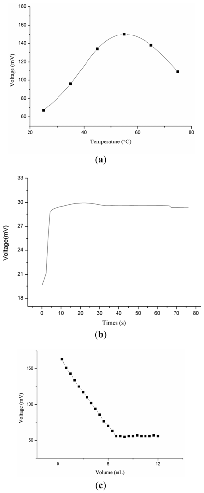 The response of an ion selective electrode is also temperature dependent due to changes in the ionic mobility of target ions in solution. In this experiment, the effect of temperature on the response of the proposed electrode was observed from room temperature to 75 °C.