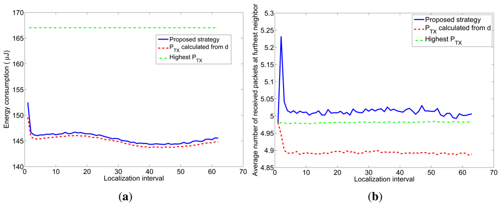 Although the energy consumption will increase when these two corrections are included in the transmission strategy, they are necessary to achieve the desired number of received packets in real environments and, therefore, to achieve the desired accuracy; otherwise, the accuracy would not be guaranteed. Nevertheless, the final energy consumption is very small and still entails significant savings with respect to other transmission strategies.