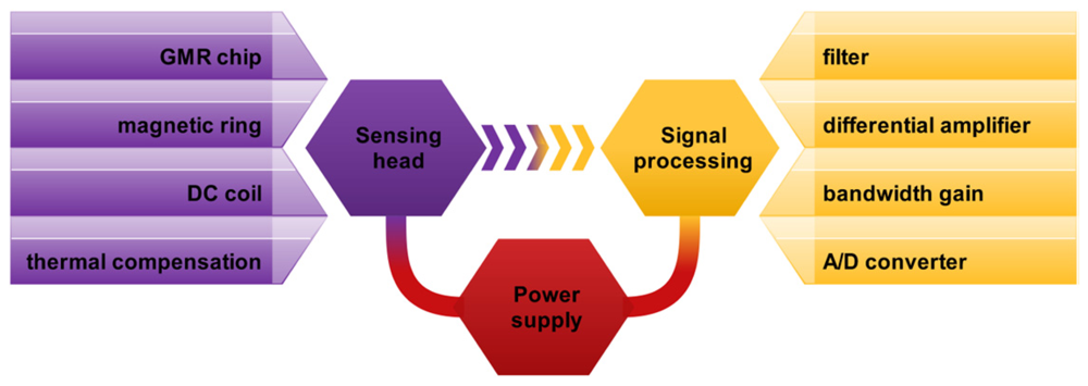 Compared with the current sensors mentioned above, the GMR effect sensor has advantages of high sensitivity, high linearity, small volume, low cost, simple structure and lower susceptibility to the temperature, which make it the most promising for current measurement in smart grids, especially in distributed transmission lines.