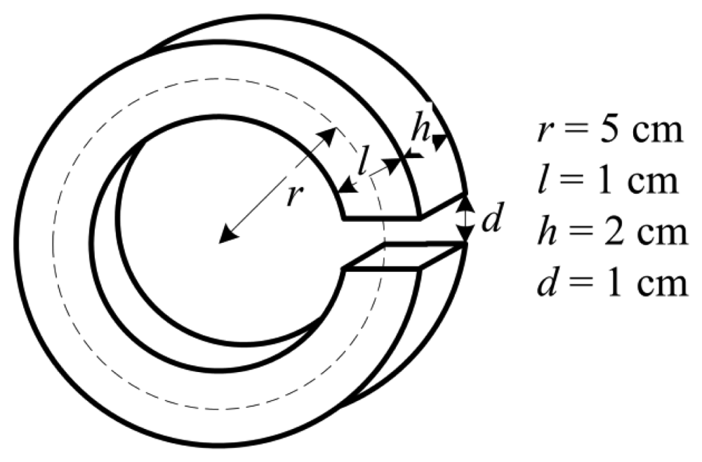 The magnetic ring is made of a soft ferromagnetic material with a large relative permeability, and its structure is shown in Figure 5. It can make the magnetic field to remain stable and nearly unaffected by position fluctuation of the current line. The magnetic field in the gap of the magnetic ring can be described as: