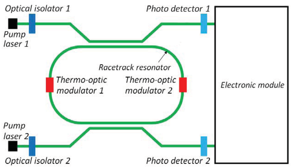- Jin, L.; Li, M.; He, J. Highly-sensitive silicon-on-insulator sensor based on two cascaded micro-ring resonators with Vernier effect. Opt. Commun. 2011, 284, 156–159. [Google Scholar]