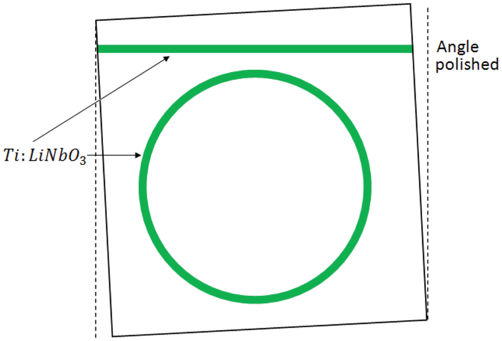 Optically pumped integrated ring lasers present the drawback of requiring an out-of-chip pump laser, so that they cannot be fully integrated and their efficiency is typically very low. The first optically pumped integrated ring laser has been reported in [84], realizing a cavity with a radius of 30 mm in LiNbO3 technology. The ring laser, whose structure is reported in Figure 14, includes an Er-doped ring with a radius of 30 mm and two straight waveguides that constitute two directional couplers. The upper waveguide couples both clockwise and counter-clockwise waves into the ring and it is optimized for operation with a TE-polarized pump wave at λ = 1.48 μm.