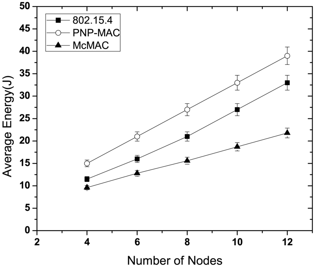 This study evaluates the average energy consumption of the nodes for different protocols. We also evaluate the average energy consumption for diverse periodic traffic in McMAC.