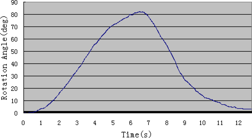 Generally speaking, the range of movement of human elbow is from 0° (Figure 7(a)) to 135° during flexion and extension. In order to accomodate more patients, in this experiment the subject was required to perform the motion from 0° to 100°. For safety, if the device rotates over this range, the motor will be stopped at once. On the other hand, if the device rotates above the safe velocity, the motor will also stop at once, which can be set according to the therapist’s experience and patients’ physical condition.