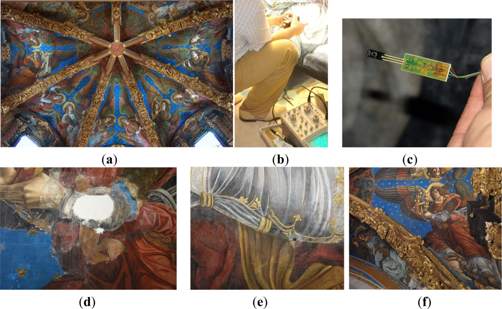 - Zarzo, M.; Fernández-Navajas, A.; García-Diego, F.-J. Long-term monitoring of fresco paintings in the cathedral of Valencia (Spain) through humidity and temperature sensors in various locations for preventive conservation sensors. Sensors 2011, 11, 8685–8710. [Google Scholar]