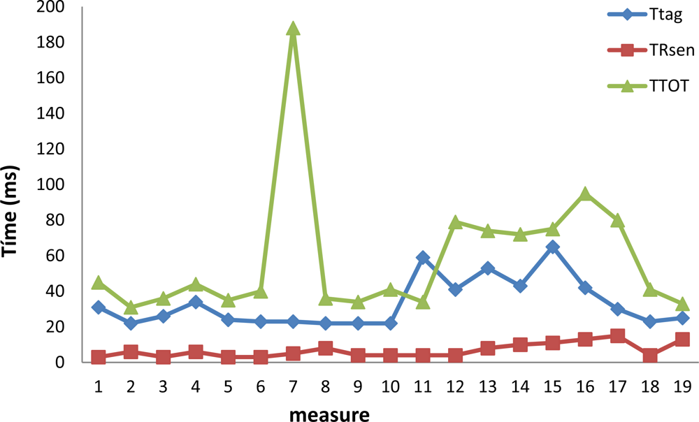 In this section we present the experimental results after measuring the next parameters: TGPS, TRGPS, TSen, TRsen, TTag and TTot. For the values presented in this section we repeated the experiments several times obtaining for all the measurements similar values (low typical deviation).