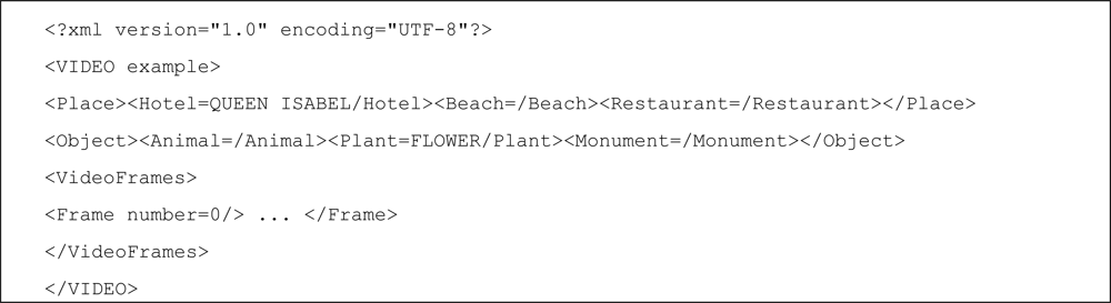 New multimedia standards, such as MPEG4 and MPEG7, provide the basic functionalities in order to manipulate and transmit objects and metadata. Concretely, MPEG7 (the formally called Multimedia Contend Description Interface) helps describe video content and thus enables the user to easily perform many tasks such as find, store and locate a video [25]. It has the ability to describe the low level, semantic and structural aspects of the video. Let us note that by using an automatic tool, or manually, the video’s content can be described in MPEG7, but we are not interested in describing the video’s content. We are interested in augmenting the expressivity of a video with other information sensed by other sensors. In this way, the video information can be interpreted taking into account this information. For example, different parts of a video of a beach, tagged with temperature values provided by a sensor, could enrich the video allowing the user to interpret the scene.