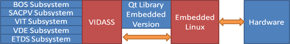 The main system software on the ARM-core was performed and integrated on an embedded Linux OS kernel, the Qt GUI SDK library. To control the hardware peripherals, the proposed system activates the corresponding control messages to the device drivers on the embedded Linux kernel. The Linux kernel then signals the related hardware peripherals, such as GPIO signals, voice speakers, and communication devices. Thus, drivers can operate the proposed system using the touch panel and hardware peripherals. Figure 14 shows the overall software architecture of the proposed VIDASS system.