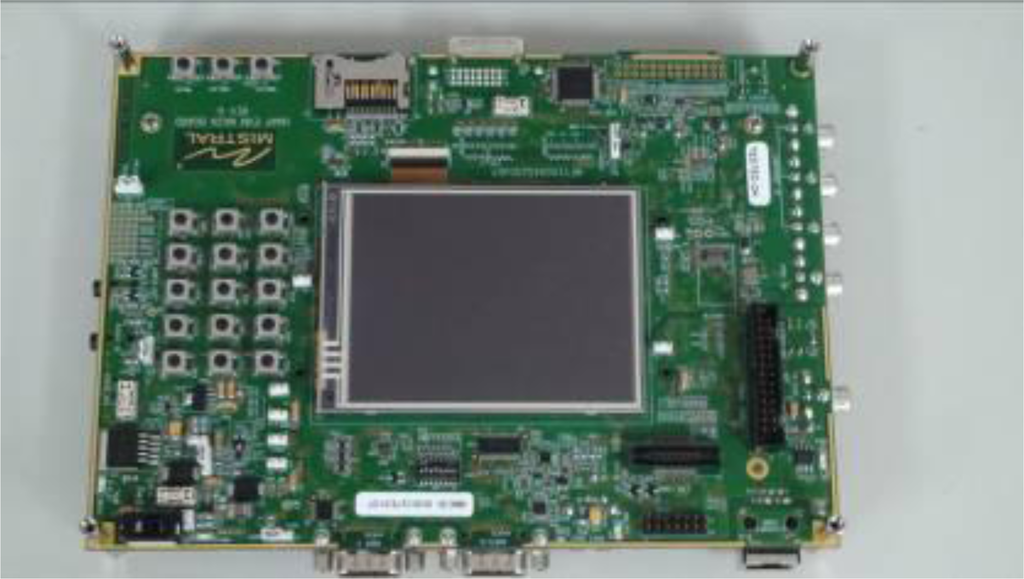 In this study, the proposed VIDASS system was implemented on an ARM-DSP heterogamous dual-core embedded platform, the TI OMAP3530 platform (Figure 9) [36]. The TI OMAP3530 platform is an efficient solution for portable and handheld systems from the TI DaVinci™ Digital Video Processor family. This platform consists of one Cortex A8 ARM-based general-purpose processor with a 600 MHz operational speed and one TI C64x+ digital signal processor with a 430 MHz operational speed on a single chip. This platform also includes 256 MB of flash ROM memory for storing the embedded Linux OS kernel, Qt-based GUI system, and the proposed vision-based software modules, and 256 MB of DDR memory for executing the software modules. In addition to the main platform, peripheral devices such as image grabbing devices, LCD touchscreen panel, mobile communication module, and other in-vehicle control devices are also integrated to accomplish an in-vehicle embedded vision-based nighttime driver assistance and surveillance system.
