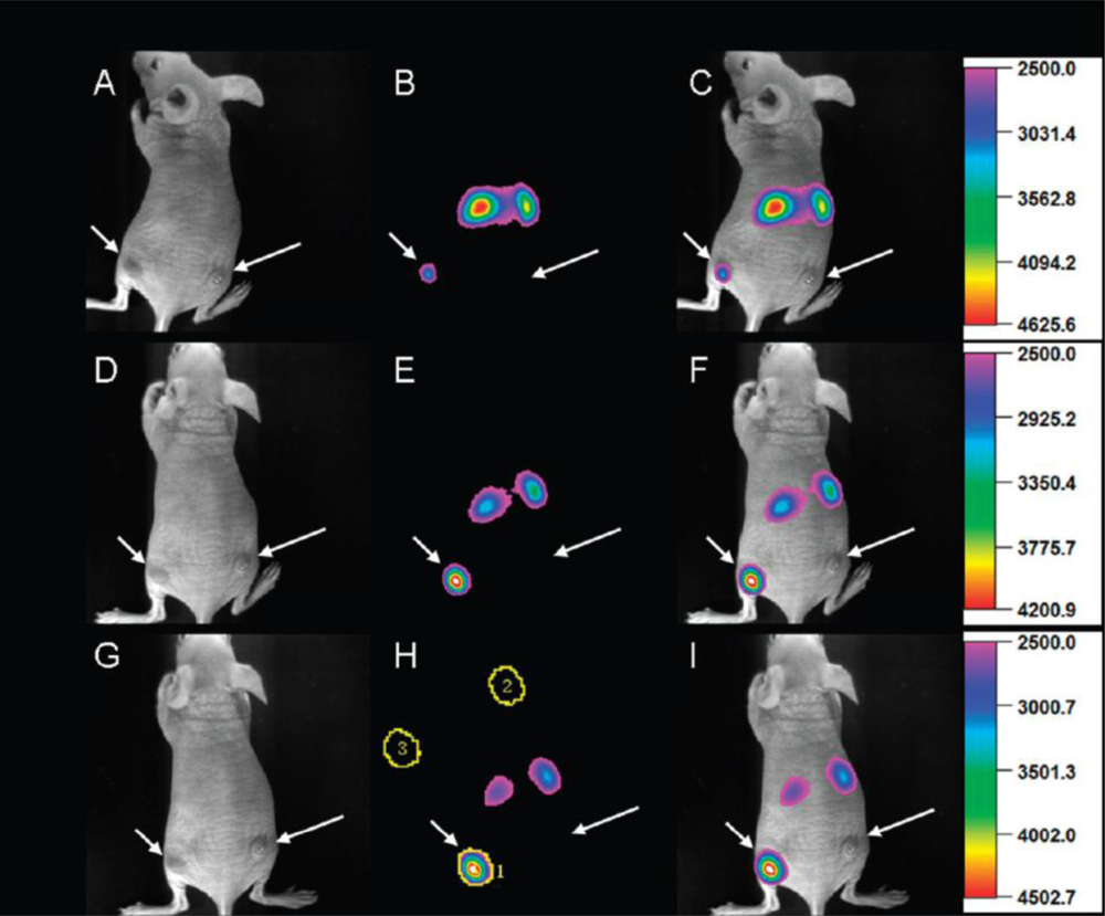 Since Chatterjee et al. [55] first studied the in vivo imaging of UCNs in small mammals which showed much higher fluorescence compared to QDs, it has made significant progress and attracted great interest. In Li’s group [4], they found a high relaxivity of 5.60 s−1 (mM)−1 of UCNs, and the UCNs were successfully applied as contrast agents form magnetic resonance imaging (MRI) in vivo. The concept of upconversion and magnetic resonance dual-modality imaging in vivo of whole-body animals using UCNs with magnetic resonance properties has showed great promise to serve as a platform technology for the next-generation of probes for bioimaging in vivo. Fluorescence targeted imaging in vivo has proven very useful in tumor recognition and drug delivery. Xiong et al. [23] developed a high contrast upconversion imaging protocol based on UCNs as luminescent labels for targeted imaging of tumors both in in vivo and in vitro. No autofluorescence signal observed in imaging even at high penetration depth (∼600 μm) and the signal-to-noise ratio could be reached ∼24 between the tumor and the background, which cannot be obtained in single-photon or two-photon fluorescence imaging (Figure 11). Their study may open up a new perspective for cell recognition and targeted imaging-guided cancer diagnosis.