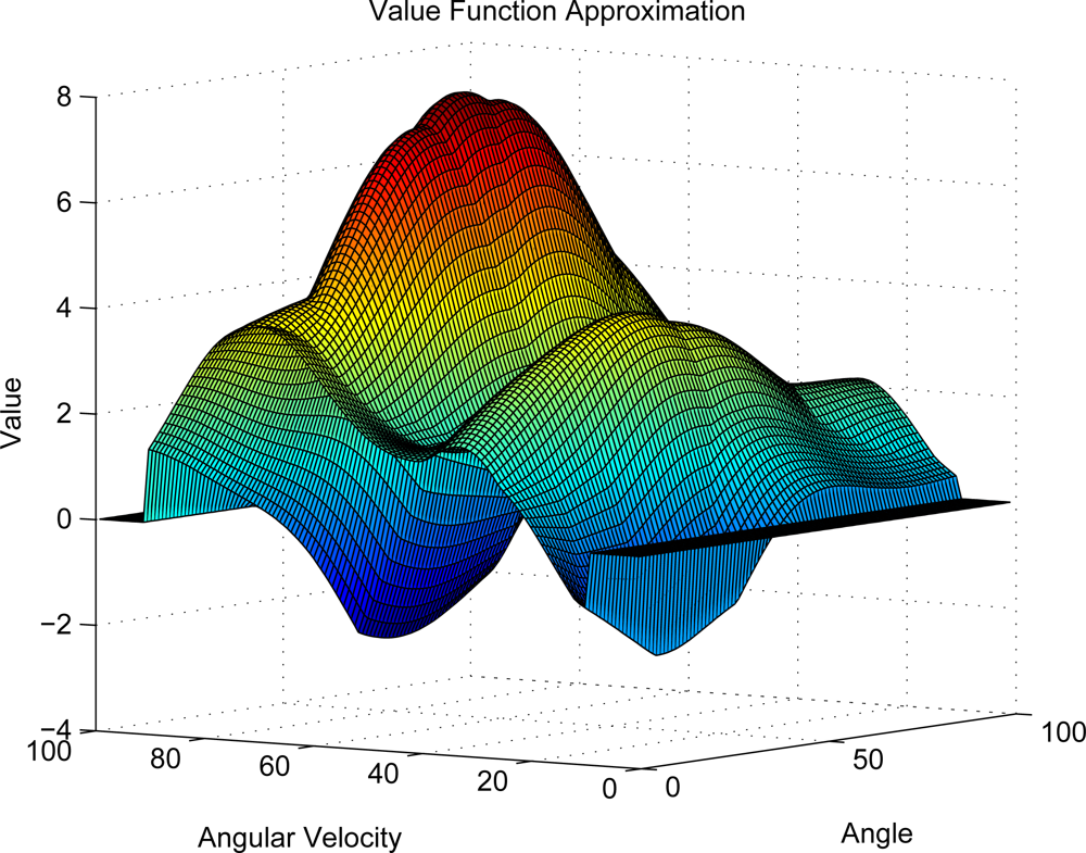 In this experiment, we will show the approximated value function of Compressed Kernelized LSPI on pendulum domain. From Figure 5, we can see that although there are some dissimilarity, the approximated value function can produce good policy and is satisfactory enough to capture the main topology of the true value function.