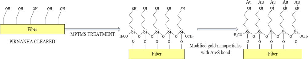 Notably, the force between the gold-nanoparticles and mercapto group was not electrostatic. Based on a study of MPTMS-modified nanoparticles in Au-S on wafer [16], MPTMS is able to modify nanoparticles in Au-S on the fiber surface.