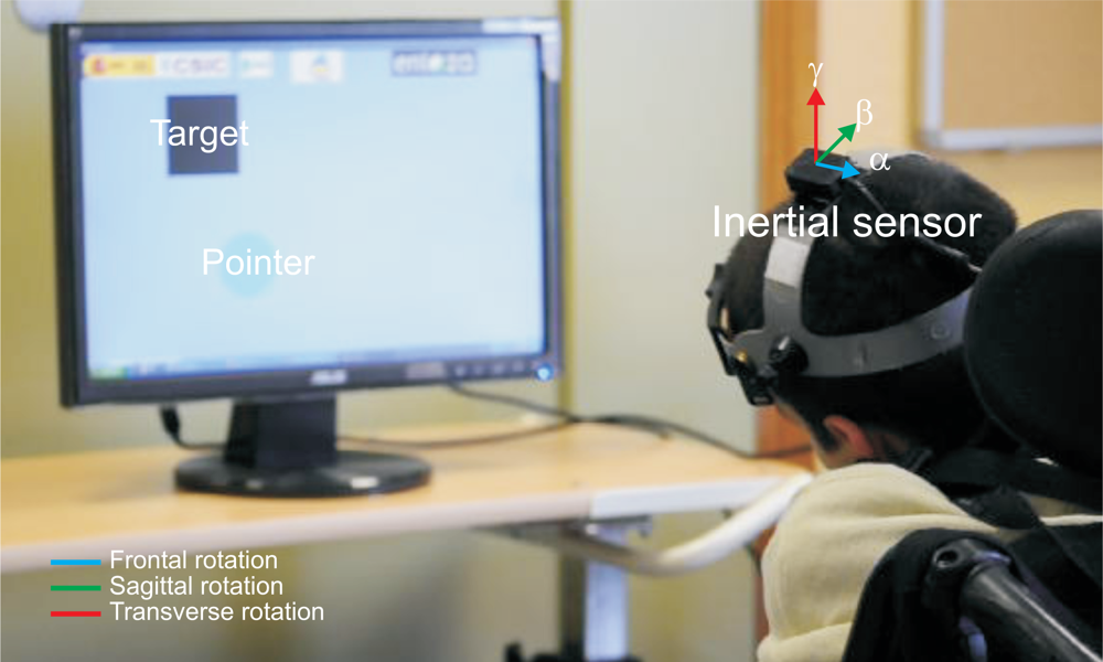 In conclusion, the inertial interface ENLAZA is an effective HCI for people with motor disorders. People who were unable to control conventional interfaces were able to control the computer with an average reaching time between 8 and 18 s. The robust Kalman filter facilitates target acquisition reducing the effect of the involuntary movements on the control.