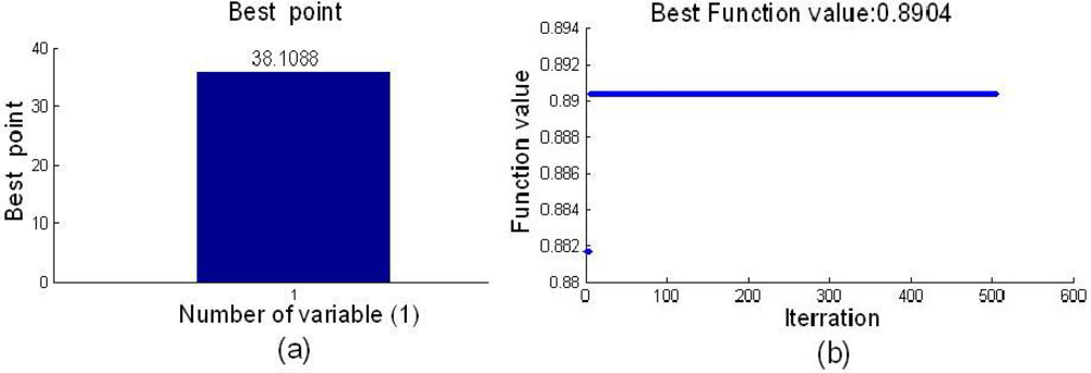 Figure 6 shows the result of the optimal cutoff and the best fitness function, and the optimal cutoff was 38.1088, and the best fitness function value of 0.8904 was obtained by SA. The stability of each variable in the BVB was shown in Figure 7. In the Figure 7, the dotted lines show the cutoff threshold, the vertical bar in Figure 7 indicated the stability range. Variables whose stability lies within the dotted lines were eliminated, and the variables whose stability lies out of the dotted lines were retained. Finally, only five variables in the BVB were retained.