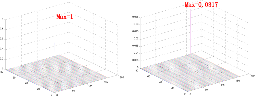 In this section, the Phase-Only-Correlation (POC) measure proposed in [27] is simply used for handling the finger-vein matching problem based on the restored finger-vein images. Assume that I0i (x, y) and I0j (x, y) are two restored images, and Fi(u, v) and Fj(u, v) represent their 2D DFT, respectively, according to the property of Fourier transform, that is,