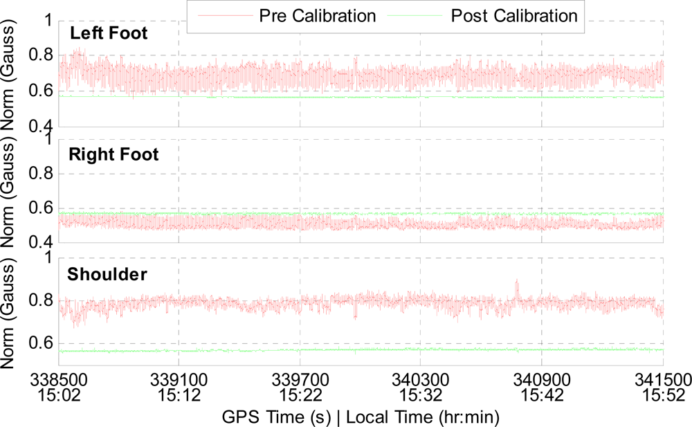 Much research has been conducted in attempting to improve inertial based pedestrian navigation accuracy indoors (e.g., [2–16]), but very little is dedicated to methods of improving the data collection process’ within the study. It is therefore the scope of this paper to address a data collection tool that will facilitate an increased rate at which researchers can study pedestrian navigation and extend applications to the biomedical field. For examples of biomedical and navigation fields converging see [17–21]. Magnetometers are also being used to improve accuracy through innovative algorithms (e.g., [22–24]).