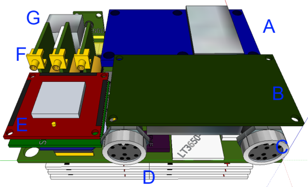 The list of GNSS receivers in Table 1 is not an exhaustive list of all possible supported GNSS systems, but rather indicates the receiver systems for which support boards have been designed to date. The OEM628 receiver forms the basis of the internal timing control of the NavCube and serves as the master timing reference for the rest of the system in addition to providing a GNSS receiver capable of very accurate phase measurements for Real-Time Kinematic positioning and high update rates. Secondary GNSS modules are installed via daughter cards, which allow future upgrade and replacement of these receivers, or the installation of multiple instances of the same receiver module when desired. Currently the system is operated with dual u-blox 6T modules, omitting the SiRF IV in order to gain multiple 5 Hz high sensitivity GPS sources.