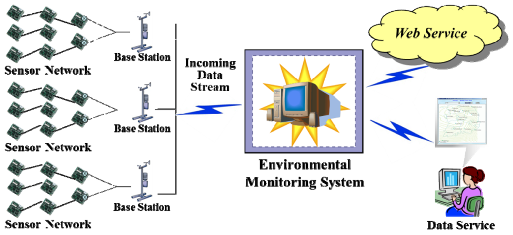 - Lee, Y.K.; Jung, Y.J.; Ryu, K.H. Design and implementation of a system for environmental monitoring sensor network. Proceedings of the Conference on APWeb/WAIM Workshop on Database Management and Application over Networks, Huangshan, China, 16–18 June 2007; pp. 223–228.