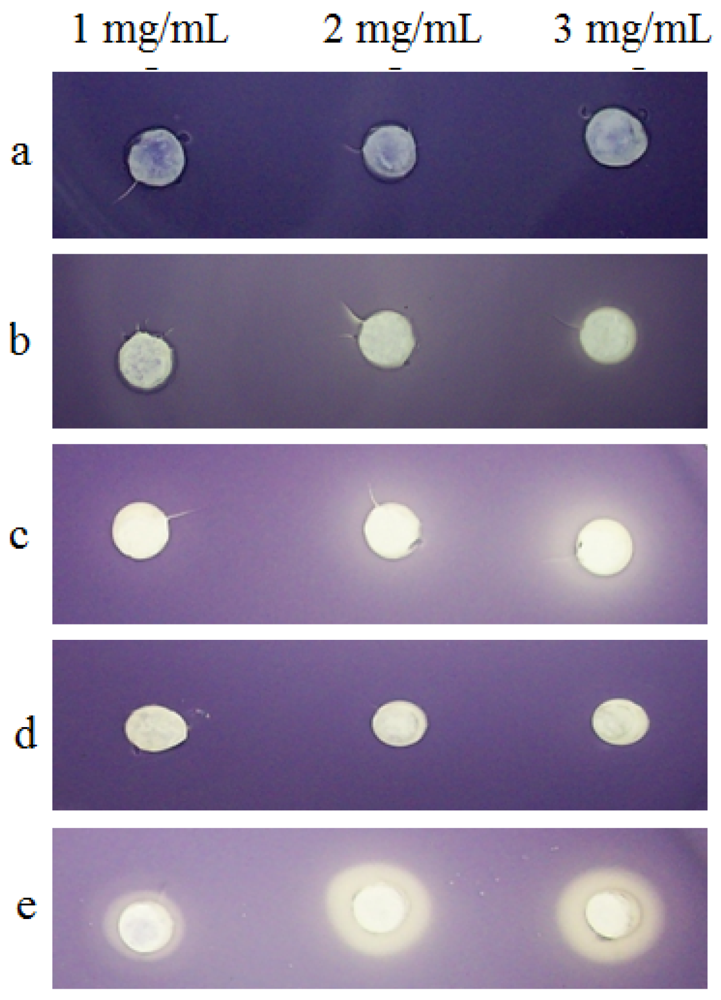 - McClean, K.H.; Winson, M.K.; Fish, L.; Taylor, A.; Chhabra, S.R.; Camara, M.; Daykin, M.; Lamb, J.H.; Swift, S.; Bycroft, B.W.; Stewart, G.S.; Williams, P. Quorum sensing and Chromobacterium violaceum: Exploitation of violacein production and inhibition for the detection of N-acylhomoserine lactones. Microbiology 1997, 143, 3703–3711. [Google Scholar]