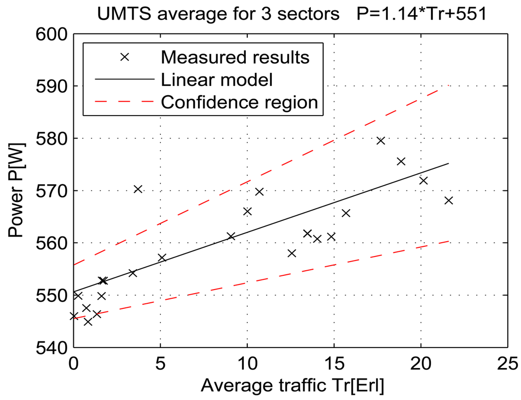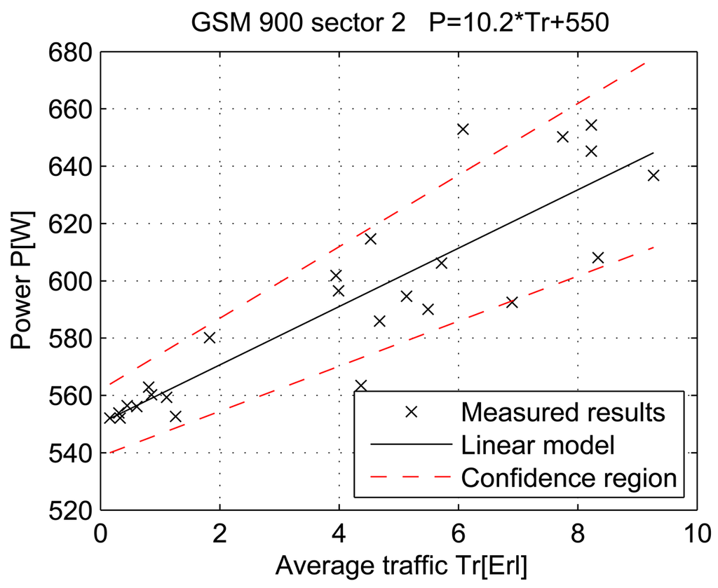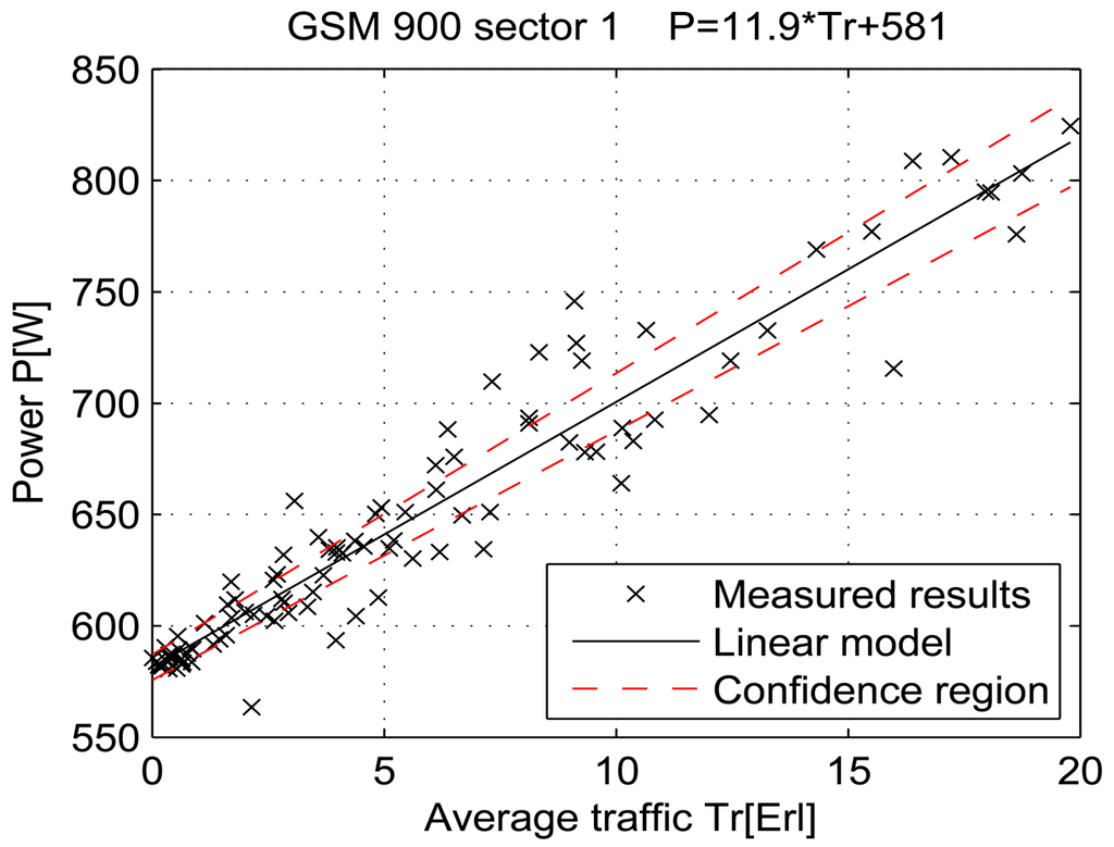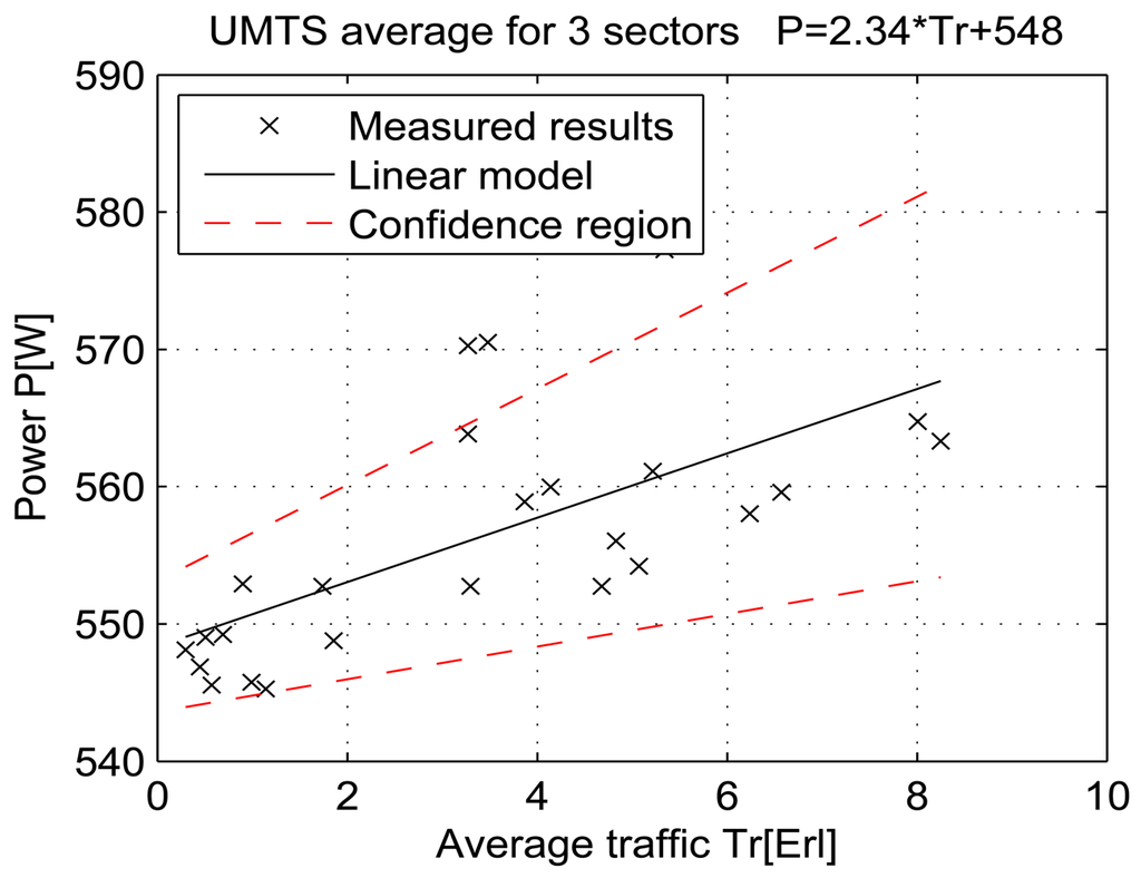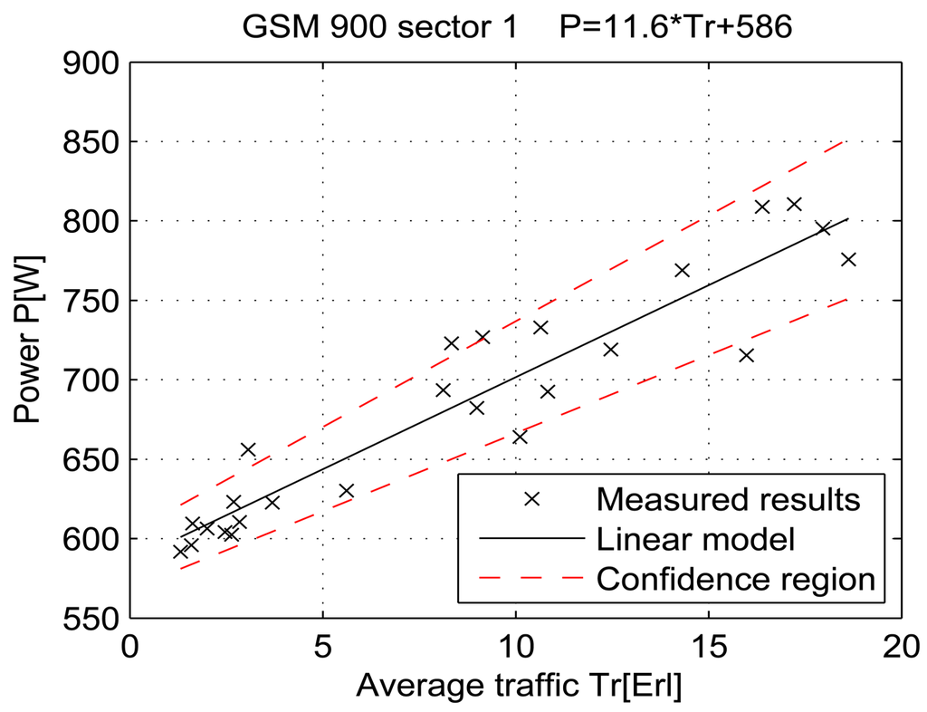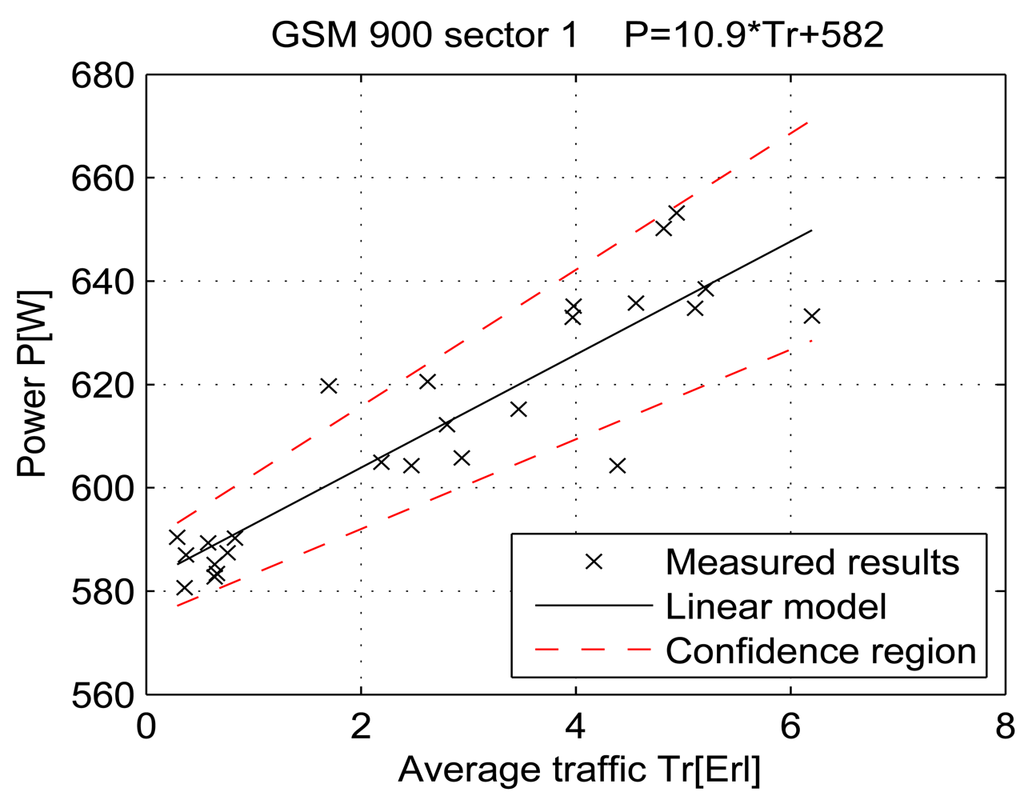 To reduce the energy consumption of cellular networks, precise knowledge about BS energy consumption and the influence of the traffic load on the instantaneous BS power consumption can be of great importance. Generally, it is assumed that the traffic load variations have small influence on the power consumption of BSs [3,4]. For that reason, this research area lacks papers offering thorough investigation regarding influence of the traffic load variations on the instantaneous power consumption of individual BSs or even complete BS sites. In some recent studies [5,6], authors use a linear models for expressing influence of the traffic load on the instantaneous power consumption of BS. In these studies, linear interdependence was assumed without additional explanation regarding reasons for such assumption.