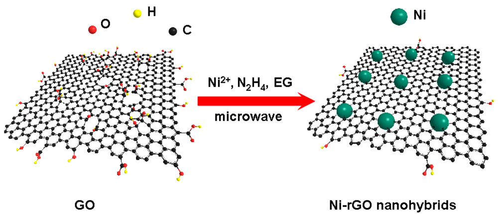 2.2. One-Step Microwave-Assisted Growth of Ni Nanospheres on rGO Sheets