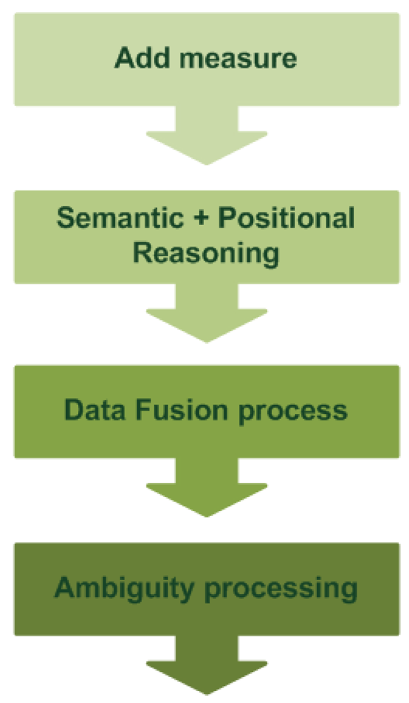 The semantic context management is done in four steps (see Figure 3): add the measures to the ontology, process the semantic and positional information, apply the data fusion mechanism and process the ambiguity contained in the data.