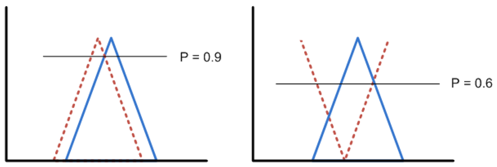 The first step will be to calculate the value of (see Figure 8 for a graphical explanation) and with it the measure of necessity (N) [see formula (6)]: