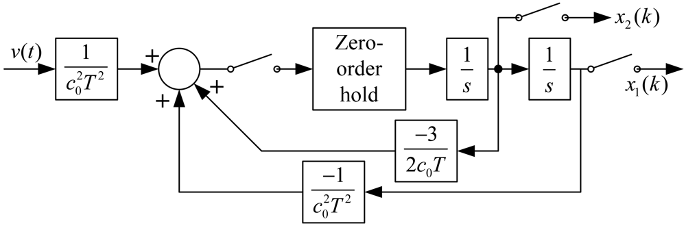 By properly introduce in sampling switch and zero-order hold, a discrete system corresponding to Equation (1) is obtained as follows: