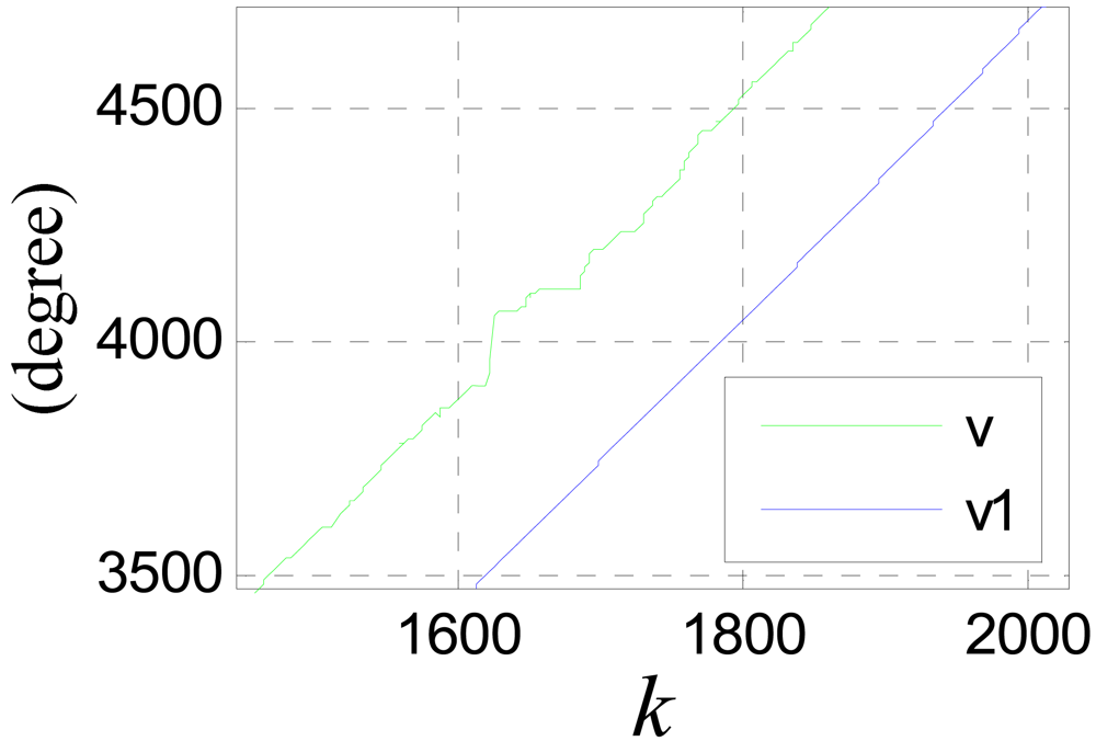 Figure 17 shows the compensation effect, where, v1 and v2 are compensation results of Equations (39) and (44) respectively.