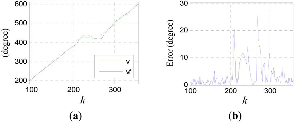 State x1(k) of Equation (16) is the smoothed approximate value of signal v(k), and x2(k) is the approximate value of v̇(k). c0(≥1) is called as filtering factor. The bigger c0 is, the smoother x1(k) is, and the bigger the time delay of x2(k) is.