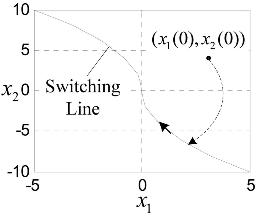 Driving by input Equation (2), the states firstly move to the control law switching line: