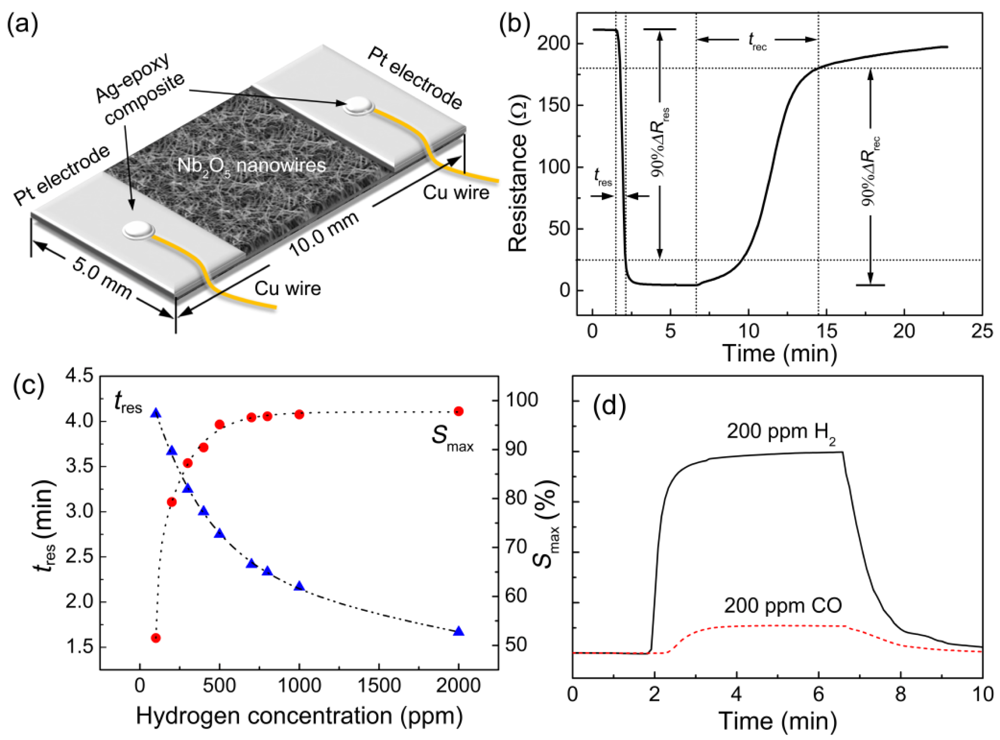 Hydrogen gas is tasteless, colorless and odorless so it cannot be detected by human beings. The low ignition energy and wide flammable range makes it easy inflammable and explosive. Therefore rapid and accurate hydrogen detection is necessary during the production, storage and use of hydrogen and it is also essential for monitoring/controlling the hydrogen concentration of nuclear reactors, coal mines and semiconductor manufacturing, etc. [1–3].